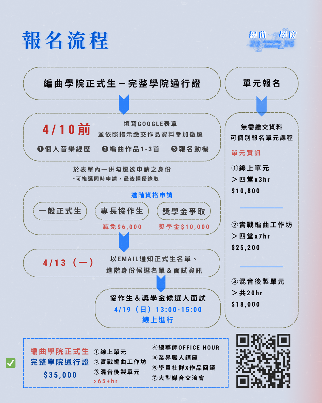 編曲學院正式生&進階錄取身份