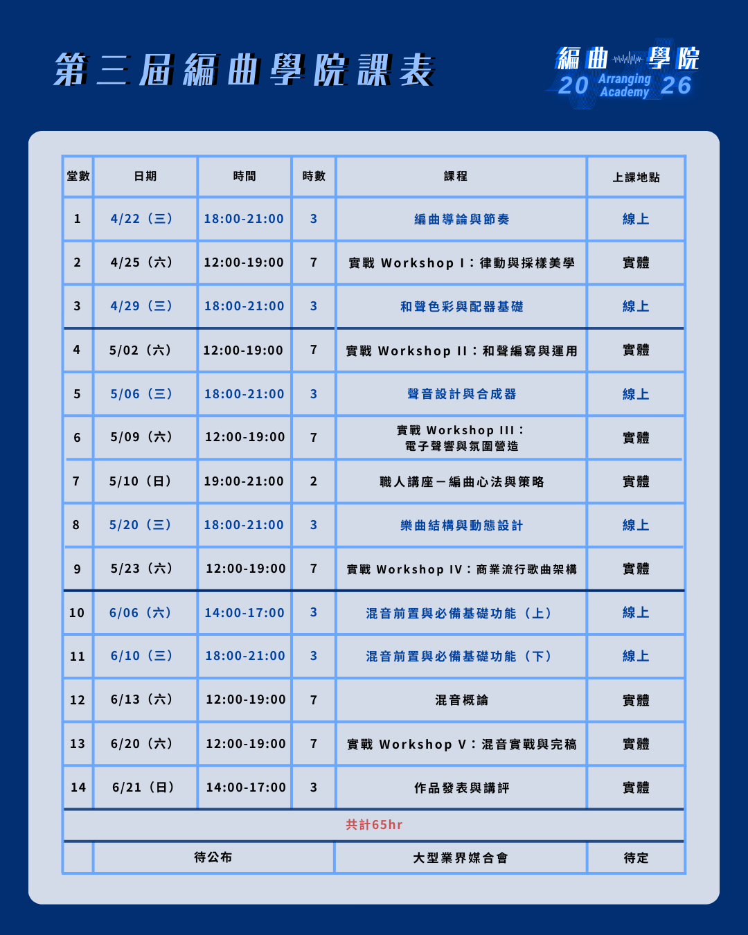 ▸ 28小時實體編曲工作坊 $25,200